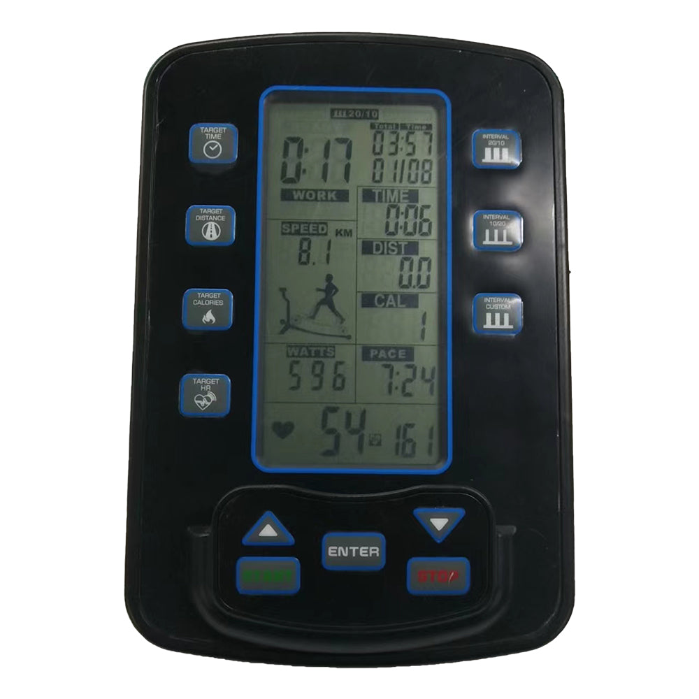 • Display shows Time, Distance, Calories, Speed, Heart Rate, Watts, Pace
